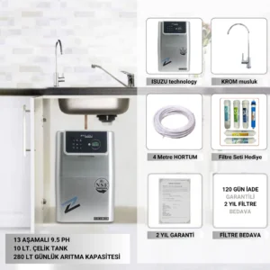 ● Alkaline Mineral Filtresi (Ekstra) – Suya alkali değer kazandırır, vücut dostu mineraller ekler.